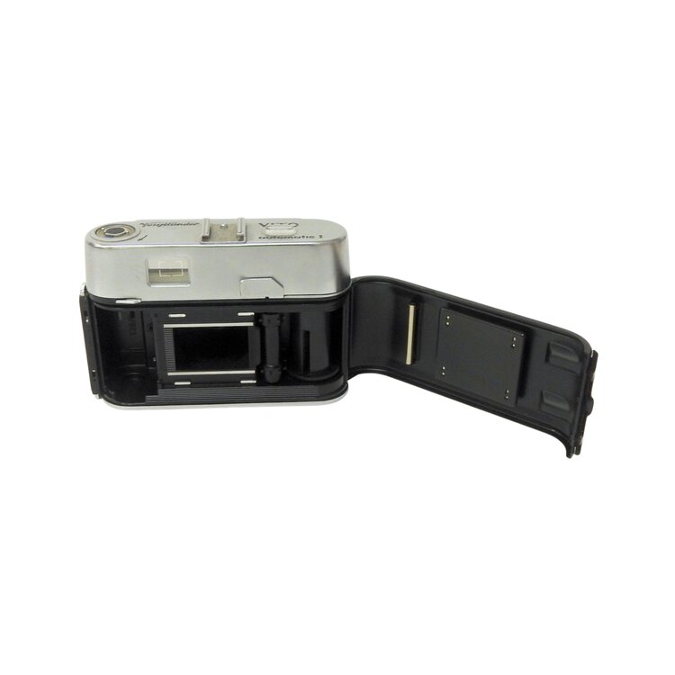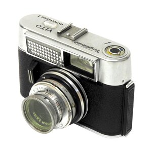 Kleinbeeldcamera: Voigtländer Vito Automatic 1. Bouwjaar 1963. Conditie: als nieuw. Afmetingen: H. 9 cm, Br. 13 cm, D. 7 cm.