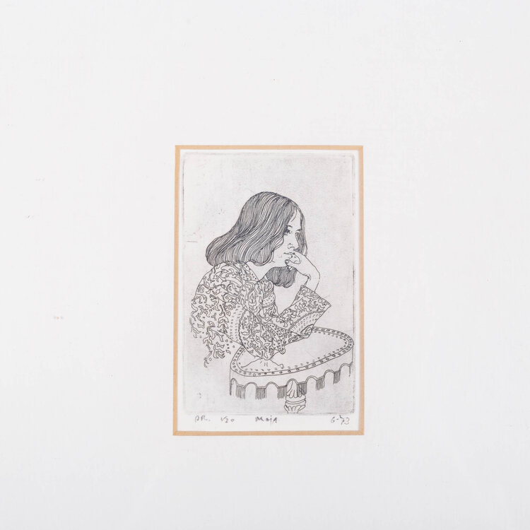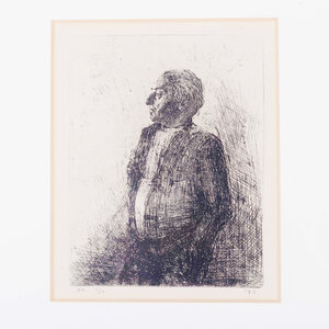 Set van drie etsen door Adolpho Ramon met portretten. Maja'III, 1973, oplage 1/20; Mijn vader, 1972, oplage 11/20 en Zelfportret II, 1972, oplage 1/20; alle in houten lijst. Conditie: gebruikssporen aan de lijsten, maar verder in prima conditie. Afmetingen: werk 10 x 6,5 cm, 14,5 x 11 cm en 14 x 10 cm; lijsten 53 x 35 cm.