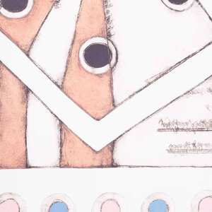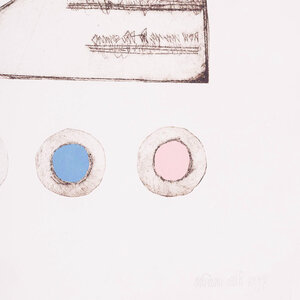 Adriaan Nette, The final tintatorium, 1977. Kleurenets op papier zonder lijst, oplage 3/9. Abstracte afbeelding van lijnen en cirkels in de kleuren roestbruin en zwart. Signatuur rechtsonder. Conditie: goed. Afmeting papier: 65 x 50 cm.