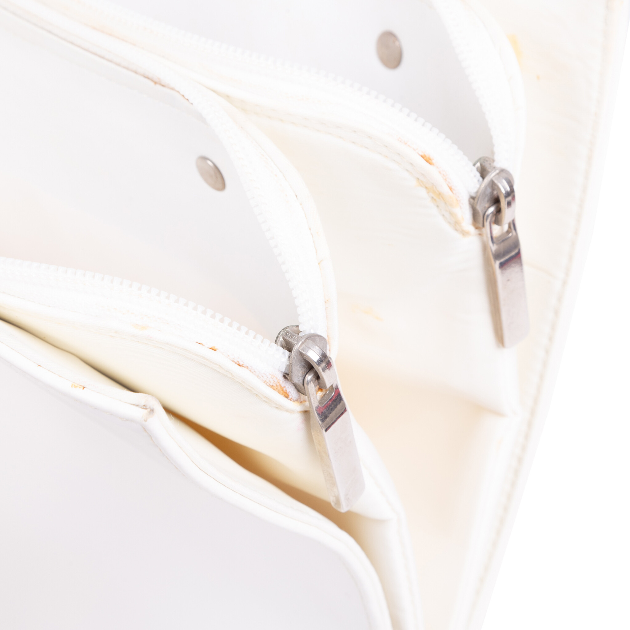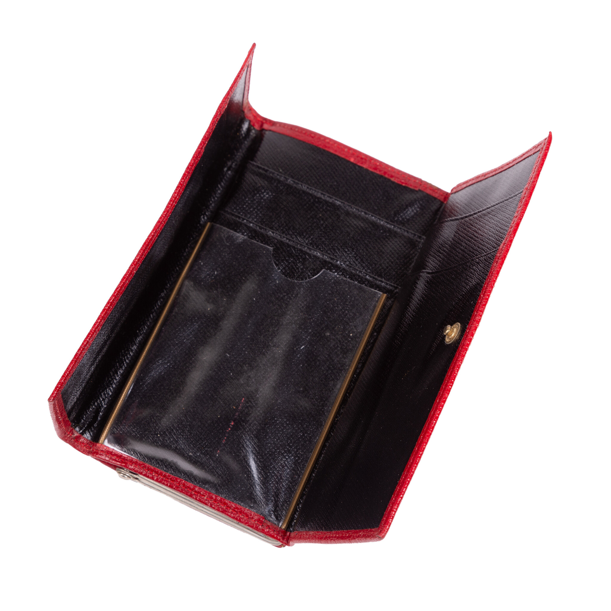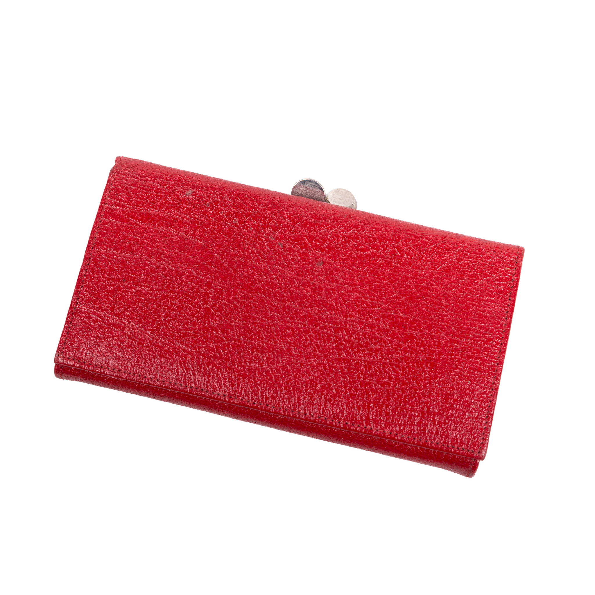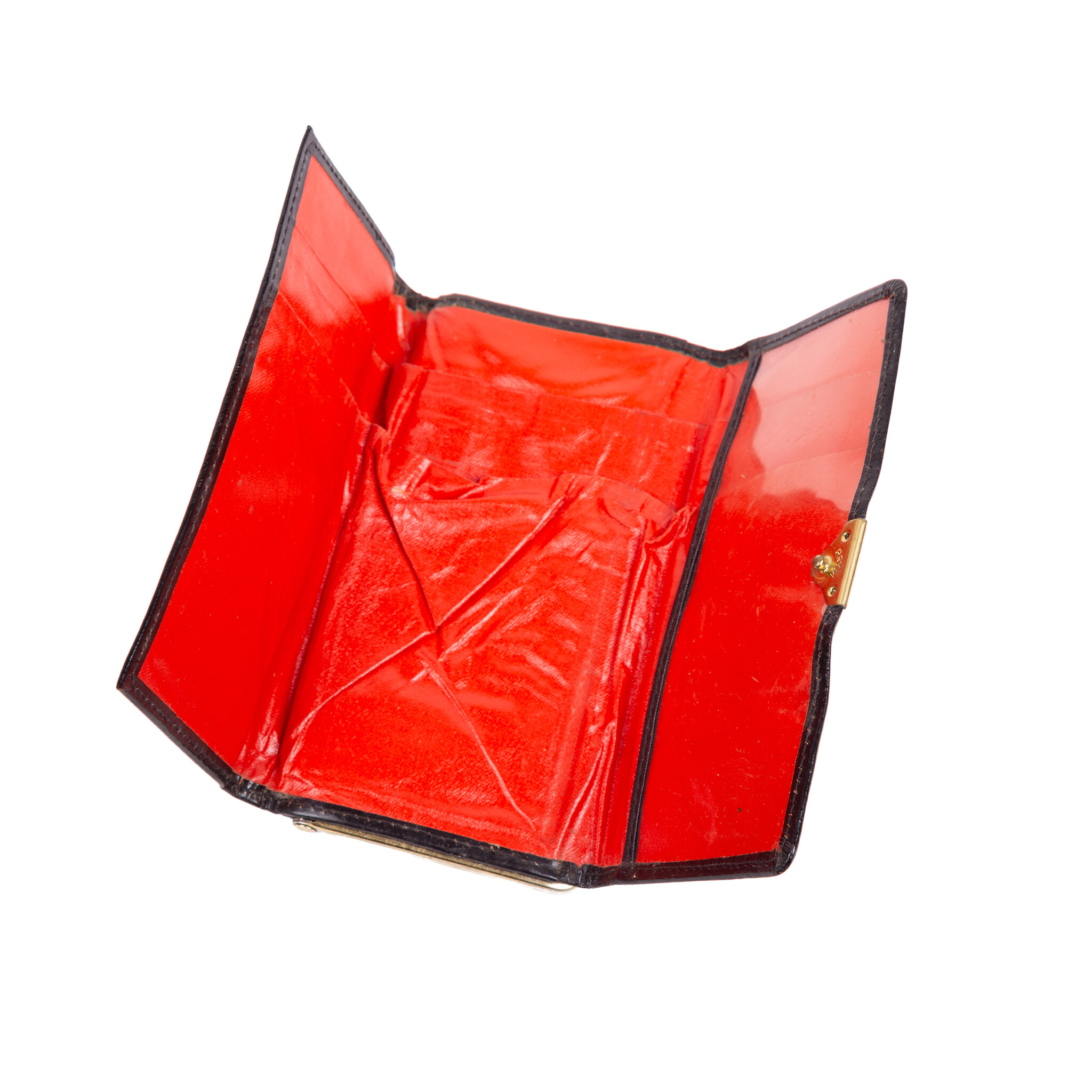 Tas, twee portemonnees en een adressenboekje, 20ste eeuw. De witte tas van Sodom Gomorra heeft dunne schouderbanden en aan de binnenzijde twee compartimenten met ritssluiting; De rode en de zwarte portemonnee hebben beide een knipsluiting en aan de voorka