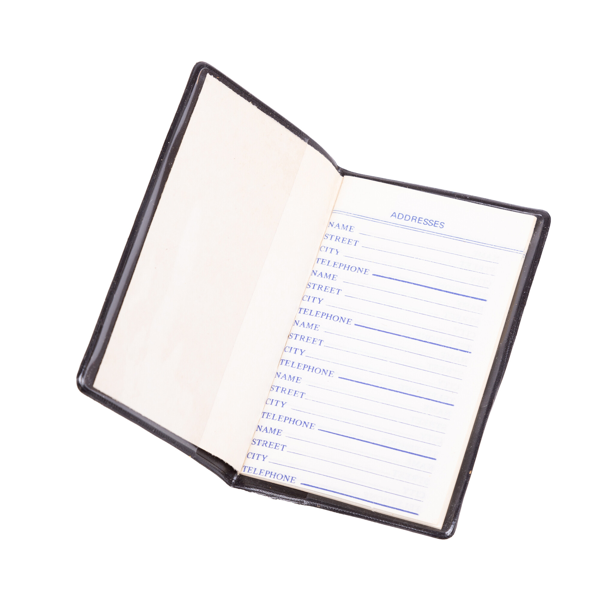 Tas, twee portemonnees en een adressenboekje, 20ste eeuw. De witte tas van Sodom Gomorra heeft dunne schouderbanden en aan de binnenzijde twee compartimenten met ritssluiting; De rode en de zwarte portemonnee hebben beide een knipsluiting en aan de voorkant een flap met drukknoop; Een klein notitieboekje in een zwart hoesje. Conditie: vertonen sporen van gebruik, zoals slijtage, vlekken en verkleuring. Afmetingen tas: ca. 28 x 35 x 7 cm; hoogte met hengsel 65 cm; Afmetingen rode en zwarte portemonnee: ca. 8 x 14 x 1,5 cm; Afmetingen notitieboekje: ca. 9,5 x 6 x 0,1 cm.