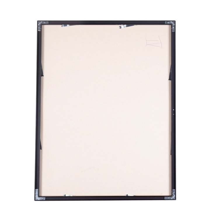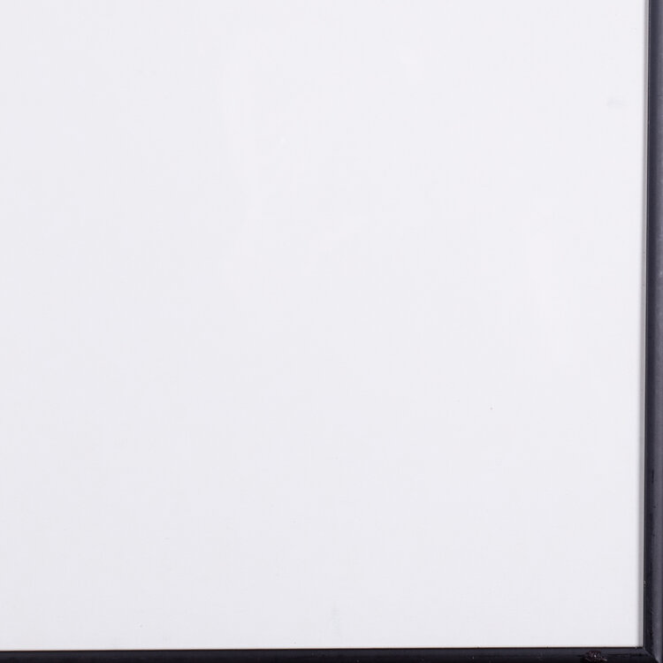 Stevige zwart aluminium wissellijst van Nielsen met helder glas voor een werk van 50 x 65 cm. Binnenmaat aan de voorzijde is 49 x 64 cm. De lijst is gebruikt bij een expositie van het Nederlands Fotomuseum. Conditie: lichte gebruikssporen aan de lijst, zoals butsjes en krasjes. Afmeting buitenmaat: ca. 50,5 x 65,5 x 2,5 cm.