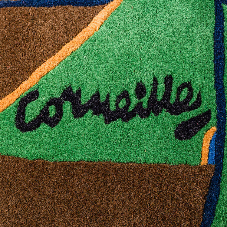 Corneille, Tapijt 'Sentimental journey', jaren 90. Handgetuft wollen vloer- of wandkleed, oplage 1/125. Afgebeeld is een portret van een vrouw in groen met op de achtergrond vogels en een kat. Linksonder de signatuur 'Corneille'. Een gesigneerd papieren certificaat van echtheid wordt meegeleverd. Corneille (1922-2010) was een schilder en grafisch kunstenaar die begin jaren vijftig de conservatieve Nederlandse kunstwereld radicaliseerde. Samen met vijf andere invloedrijke kunstenaars richtte hij in 1948 de naoorlogse Europese expressionistische beweging CoBrA op. Aanvankelijk sterk beïnvloed door het werk van Picasso maakte Corneille abstract werk. Vanaf de late jaren zestig krijgt Corneille's werk een meer figuratief karakter. In dit werk zijn vogels, vrouwen en bloemen vaak het onderwerp. Conditie: als nieuw. Afmetingen: ca. 200 x 242 cm.