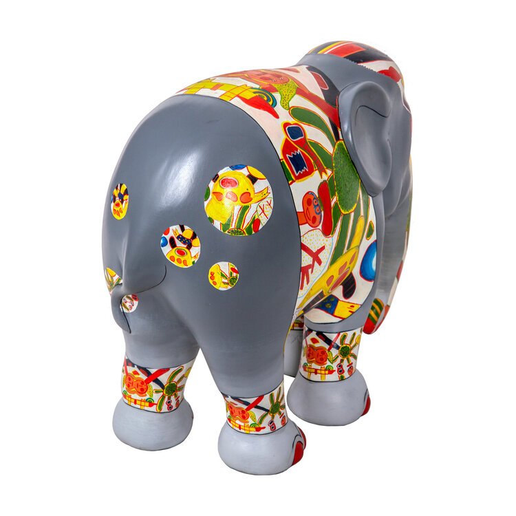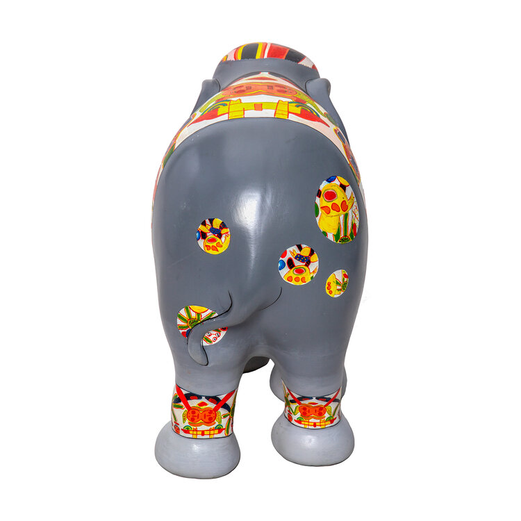 Corneille, Olifant grijs, 2009, oplage HC II/V. Polyester sculptuur van een olifant met de hand beschilderd naar Corneille's instructies. De basis van de olifant is grijs met kleurrijke versieringen. De olifant zit in een kartonnen doos en er is een gesigneerd en genummerd document bijgeleverd. De sculptuur was gelanceerd ter gelegenheid van de openluchttentoonstelling Elephant Parade, die ten doel had projecten te steunen voor het behoud van de Aziatische olifant, die sterk met uitsterven wordt bedreigd. Conditie: de sculptuur zit nieuw in de verpakking. Afmeting olifant: H 28 x B 35 x D 17.