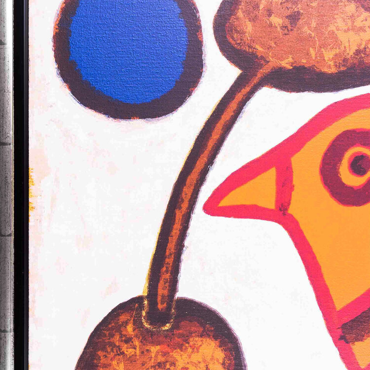 Corneille, L'Oiseau Libre, 2008. Zeefdruk op linnen in zilverkleurige lijst, oplage van 130. Voorstelling van een vorgel in oranje, daaronder een rode hand met een vis erop. Rechtsonder signatuur, jaar en oplagenummer. De zeefdruk is gedrukt bij Wendrich Art in Rotterdam. Corneille (1922-2010) was een schilder en grafisch kunstenaar die begin jaren vijftig de conservatieve Nederlandse kunstwereld radicaliseerde. Samen met vijf andere invloedrijke kunstenaars waaronder Karel Appel en Constant richtte hij in 1948 de naoorlogse Europese expressionistische beweging CoBrA op. Corneille volgde tussen 1940 en 1942 cursussen tekenen en etsen aan de Academie van Beeldende Kunsten in Amsterdam, maar wordt over het algemeen beschouwd als een autodidactische schilder. Aanvankelijk sterk beïnvloed door het werk van Picasso maakte Corneille abstract werk. Vanaf de late jaren zestig krijgt Corneille's werk een meer figuratief karakter. In dit werk zijn vogels, vrouwen en bloemen vaak het onderwerp. Conditie: goed. Afmeting: 82 x 97 cm.