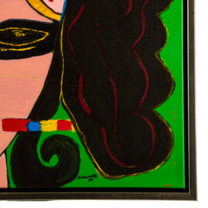 Corneille, 'Portrait imaginaire VII', 2008. Zeefdruk op linnen, oplage van 130. Kleurrijke voorstelling met het portret van een vrouwfiguur met een vogel als hoofdtooi. Signatuur Corneille 08, rechtsonder. De zeefdruk is gedrukt bij Wendrich Art in Rotterdam. Corneille (1922-2010) was een schilder en grafisch kunstenaar die begin jaren vijftig de conservatieve Nederlandse kunstwereld radicaliseerde. Samen met vijf andere invloedrijke kunstenaars waaronder Karel Appel en Constant richtte hij in 1948 de naoorlogse Europese expressionistische beweging CoBrA op. Corneille volgde tussen 1940 en 1942 cursussen tekenen en etsen aan de Academie van Beeldende Kunsten in Amsterdam, maar wordt over het algemeen beschouwd als een autodidactische schilder. Aanvankelijk sterk beïnvloed door het werk van Picasso maakte Corneille abstract werk. Vanaf de late jaren zestig krijgt Corneille's werk een meer figuratief karakter. In dit werk zijn vogels, vrouwen en bloemen vaak het onderwerp. Conditie: goed. Afmeting werk: 90 x 90 cm, lijst 95,5 x 95,5 cm.