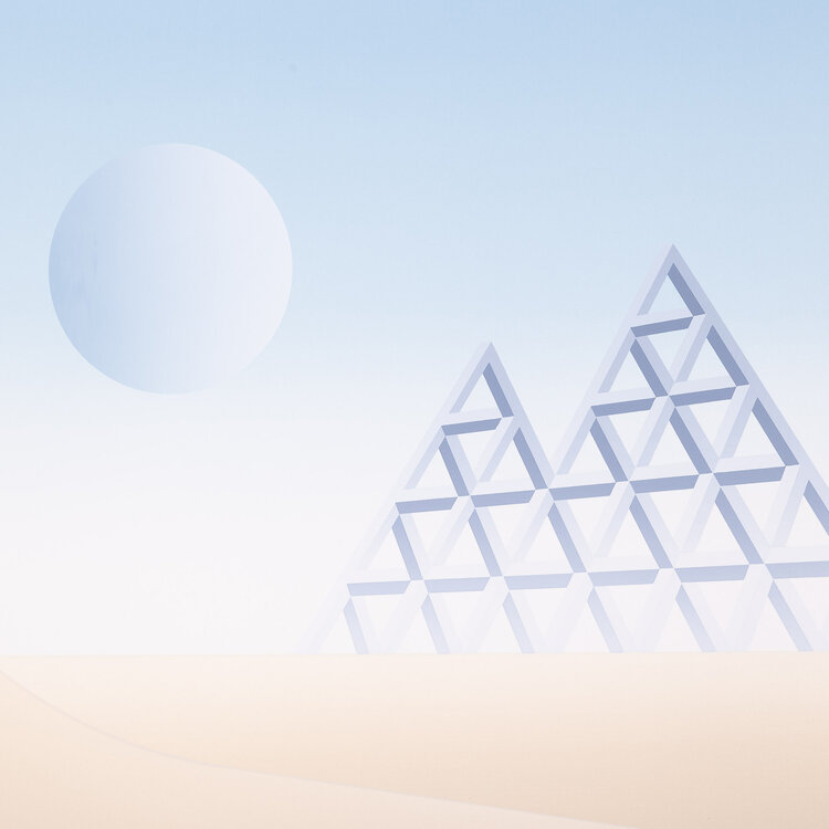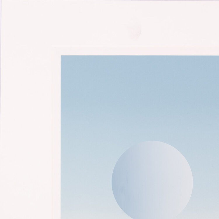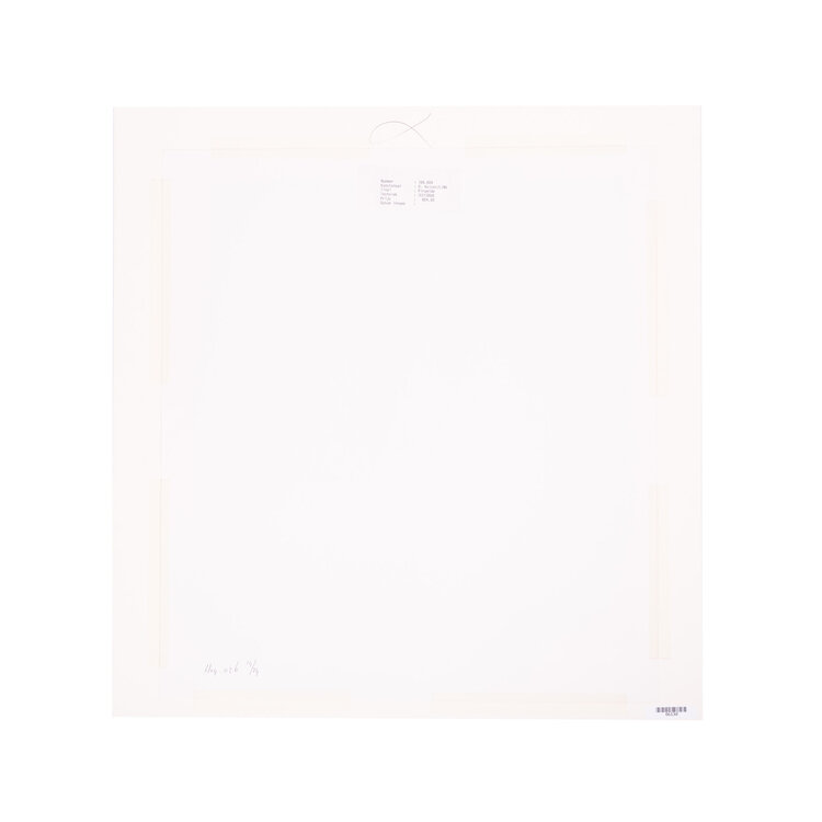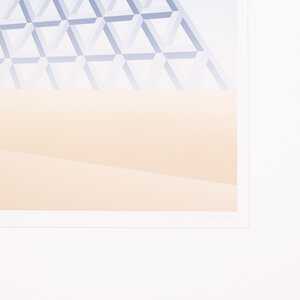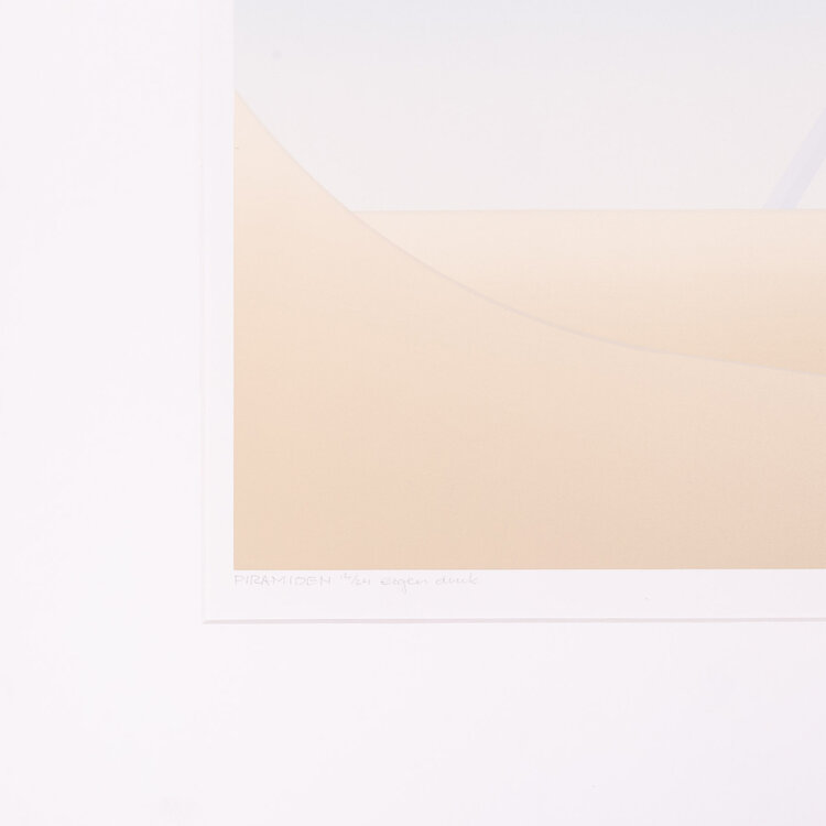 D. Huizer, Piramiden, 1982. Zeefdruk in passe-partout zonder lijst. Abstract werk met twee piramiden, in zand en blauw. Rechtsonder signatuur. Conditie: werk goed, vlekken op passe-partout. Afmeting passe-partout: 60 x 60 cm.