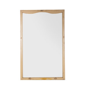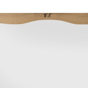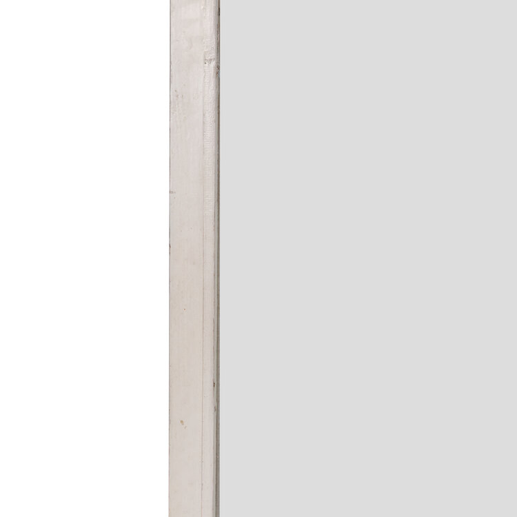 Raam van vitrine, eind 19e eeuw/begin 20ste eeuw. Raam met een crèmekleurig houten kozijn en authentiek glas. Het raamkozijn heeft een golvende bovenrand en aan de onderkant zitten twee decoratieve metalen haken. Het raam is onderdeel geweest van een vitrine die vroeger in het Fries museum stond. Conditie: Het raam vertoont sporen van gebruik en ouderdom. Het raam is vies en de verf is hier en daar afgebladderd. Afmetingen raam: ca. 127,5 x 82,5 x 3 cm.