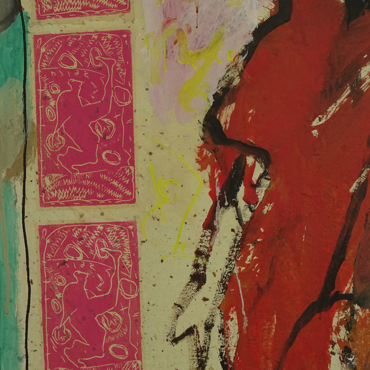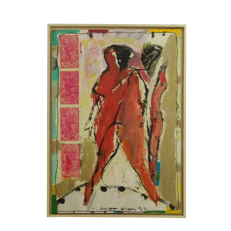 Dominique Chan, zonder titel, 1992. Acryl schilderij met geabstraheerde menselijke vorm. Afmetingen: 100x 75 cm. Conditie: Werk is in goede staat, de lijst heeft sporen van gebruik.