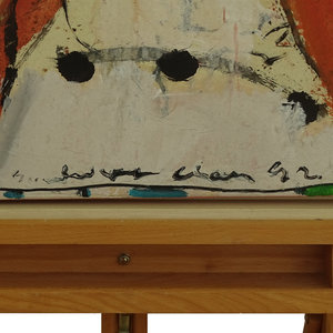 Dominique Chan, zonder titel, 1992. Acryl schilderij met geabstraheerde menselijke vorm. Afmetingen: 100x 75 cm. Conditie: Werk is in goede staat, de lijst heeft sporen van gebruik.