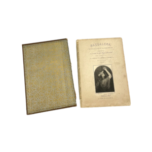Drie boeken. 'Magdalena', een evangelistisch jaarboekje uitgegeven door C.H.E. Breijer te Utrecht, redactie H. Pierson, W. v.d. Bergh en L. Esser Jr.. 34e jaargang, gedateerd 1886. Korte verhalen en gedichten, jaarkalender met een spreuk uit de Bijbel voor elke dag van het jaar. 'Camera Obscura' van Hildebrand, vierde volledige uitgave, uitgegeven door de erven F. Bohn te Haarlem, gedateerd 1854. Korte verhalen en essays. Boekje over de Nederduitse spelling, met woordenlijst vervaardigd door Mathijs Sliegenbeek, gemaakt om te gebruiken in school. Uitgegeven door Blussé en Van Braam te Dordrecht, gedateerd 1822. Datering: 19e eeuw. Conditie: redelijk, duidelijke gebruiksporen. Magdalena is in slechtere staat, daar mist de achterkaft en zit de voorkaft los. Afmetingen: ca.13,5x20cm