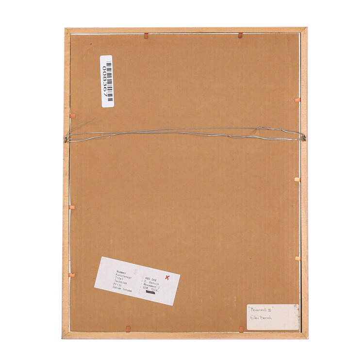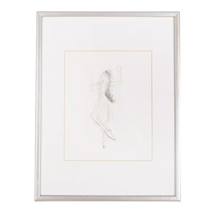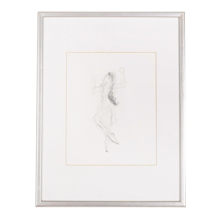 Ellen Bensch, Movement III, jaartal onbekend. Schets op papier met dansende figuur in passe-partout met zilverkleurige lijst. Afmetingen: 31 x 42 cm. Conditie: Lijst toont sporen van gebruik.