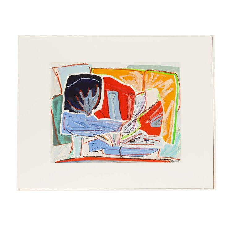 F. Linnemann, G 193, jaren '90. kleurrijke gemixte schilder techniek op papier.