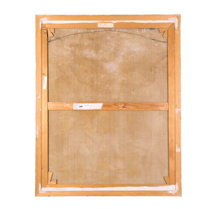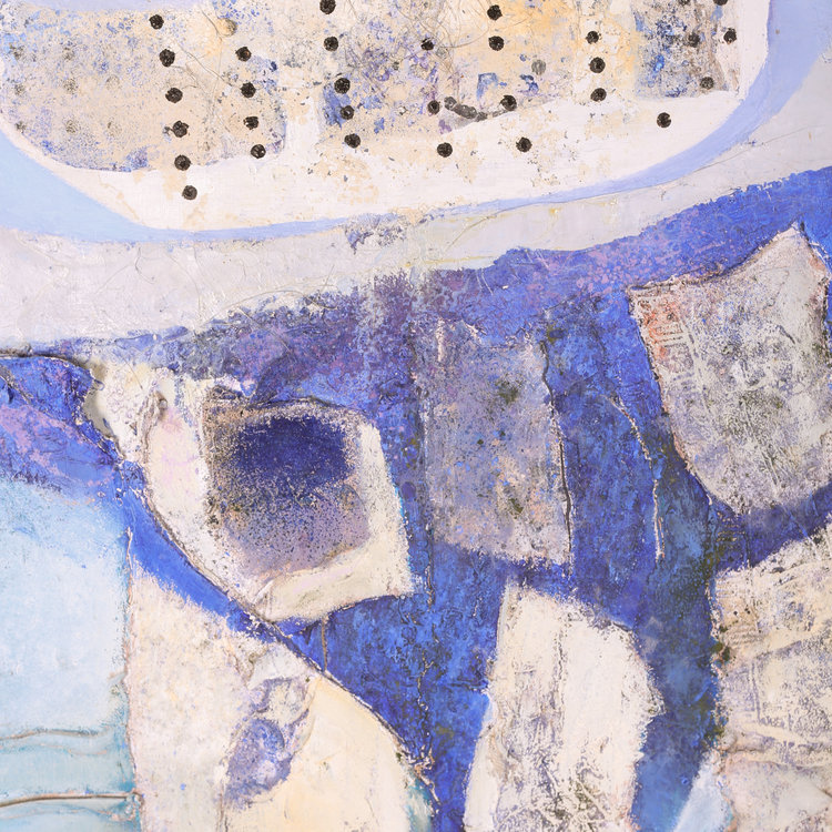 Fanny Mazure, Maanlandschap, jaartal onbekend. Mixed media met olieverf op doek. Linksonder signatuur. Abstracte voorstelling in diverse tinten blauw met wit. Conditie: Lichte gebruikssporen en craquelé in de verf. Afmeting werk zonder lijst: 100 x 80 cm.