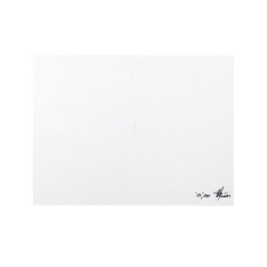 Foto, 'MX', uit een serie van vier foto's van Florence Paradeis (1964, Antony, Frankrijk) in Angers, Frankrijk, 2001. Foto op kunststof plaat van een vrouw met een speer in haar hand, staand bij een jaloezie. Signatuur op de achterkant. Over deze serie zei Florence Paradeis: "Interior: The home of vision, the closed place where an occult relation connects us with an invisible partner." Deze fotoserie behoort tot de foto expositie 'Les intérieurs du monde' uit 2001 in het Zaans Museum. Een fascinerend document van interieurs in 7 steden door 14 fotografen uit 5 landen, in samenwerking tussen de gemeenten Zaanstad en Haarlem met hun zustersteden. Angers heeft een stedenband met Haarlem. Conditie: Vertonen gebruikssporen, taperesten op de achterkant. Deukjes in de kunststofplaat. Afmetingen: 30 x 40 cm.