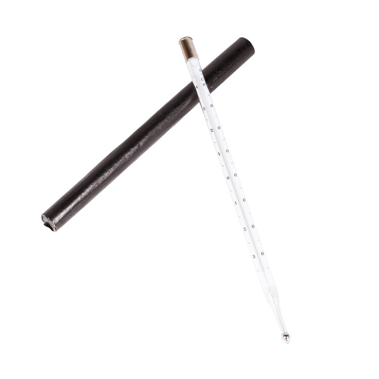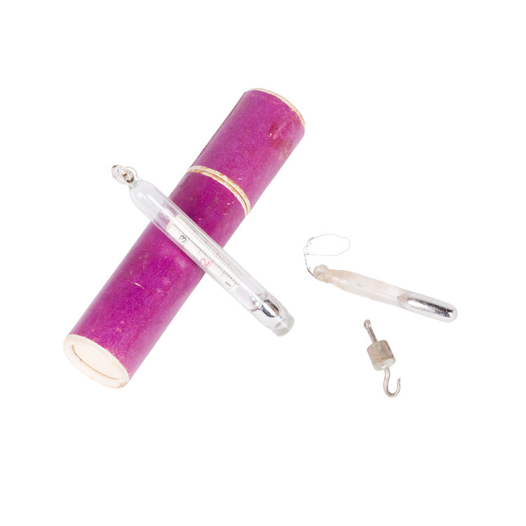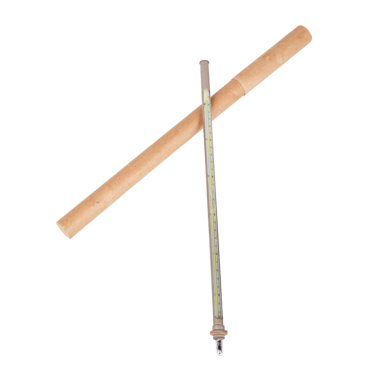 Vier kwikthermometers in kartonnen kokers. Datering: 20ste eeuw. Conditie: de thermometers vertonen sporen van gebruik. Afmetingen kokers: variërend van ca. 11,5 tot 37 cm.