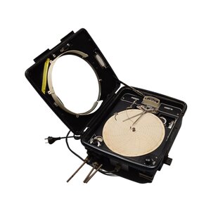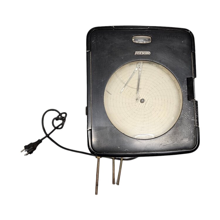 Foxboro drukmeter model 40. Datering: 20ste eeuw. Conditie: onbekend of apparaat werkt. Afmetingen: 42.5 x 36.5 x 17.0 cm.