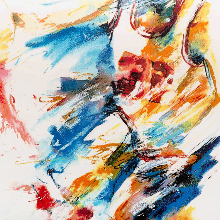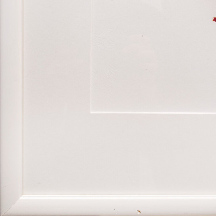 Frank Gude, 'Basketbal', 1987. Zeefdruk op papier in witte lijst, oplage 105/250. Afbeelding van een basketballer in rood, blauw en oranje. Rechtsonder signatuur en jaar. Conditie: Het werk is in goede conditie, de lijst toont lichte gebruikssporen. Afmeting lijst: 93 x 71 cm.