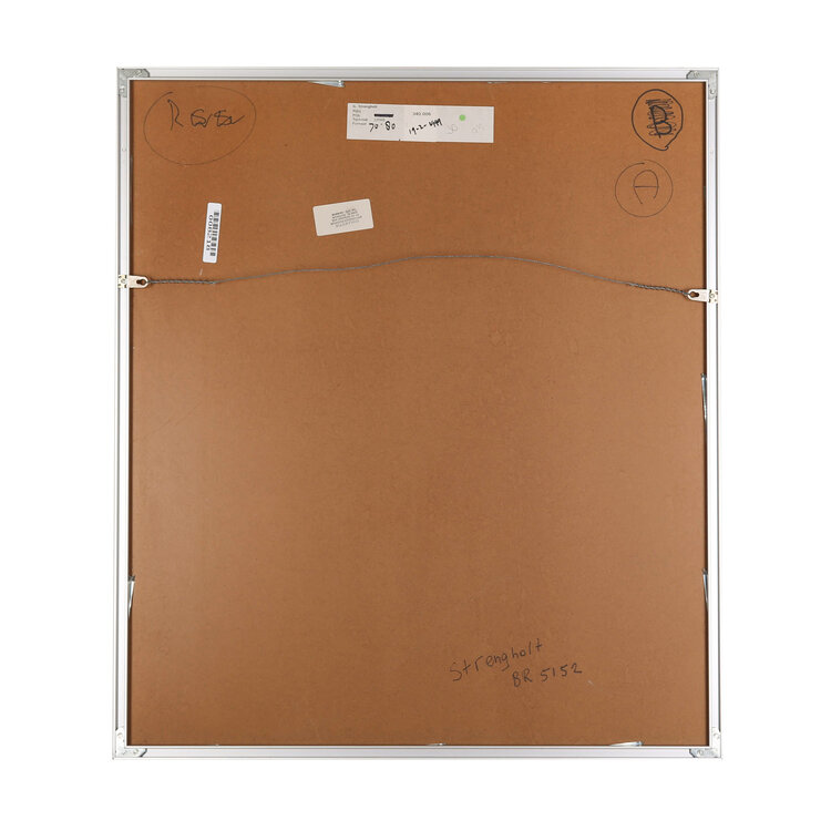 G. Strengholt, Rijbij, jaartal onbekend. Litho in metalen lijst, oplage 37/49. Abstracte compositie met twee tollen en onderaan een rij vissen in een kader. Linksonder oplagenummer, in midden titel en rechtsonder signatuur. Conditie: goed, gebruikssporen aan lijst. Afmeting werk zonder lijst: 55 x 43 cm, lijst: 70 x 80 cm.