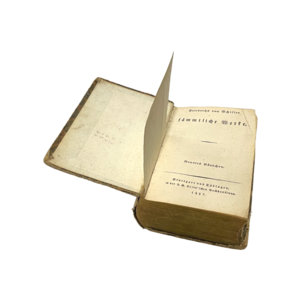 Tweemaal 'Sämtliche Werke' van Friedrich von Schiller, uitgegeven in Stuttgart, datering 1827 en 1837. Boekjes met gedichten over historische personen. Datering: begin 19e eeuw. Conditie: redelijk, gebruikssporen, verkleuring van het papier. Afmetingen: ca.10,5x14cm