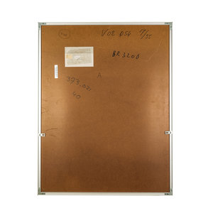 Hans Vredegoor, Cressendo II, 1986. Ets in metalen lijst, oplage 17/35. Abstracte voorstelling van wilde lijnen op een achtergrond in groen-tinten. Linksonder titel en oplagenummer, rechtsonder signatuur en jaar. Conditie: goed, gebruikssporen aan lijst. Afmeting werk: 49 x 59 cm, lijst: 90 x 70 cm.