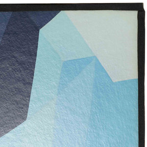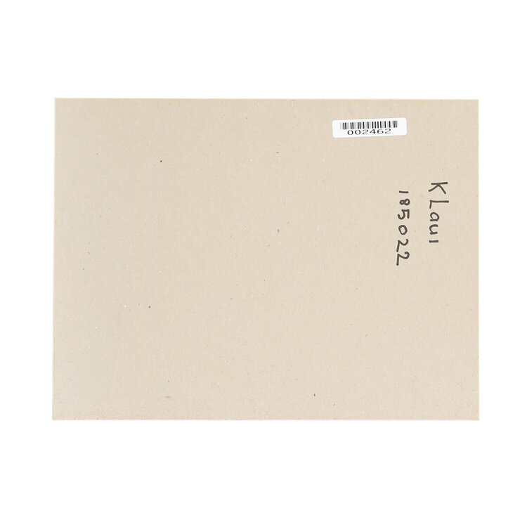 Hans Klaui, Zonder titel, 1983. Acryl op karton met zwart foamrandje. Abstracte voorstelling van blauwe blokvormen en een grote witte planeet-achtige vorm voor een zwarte achtergrond. Signatuur en jaar in midden. Conditie: de omlijsting is wat rommelig, maar verder in goede staat. Afmeting: 40 x 30 cm.