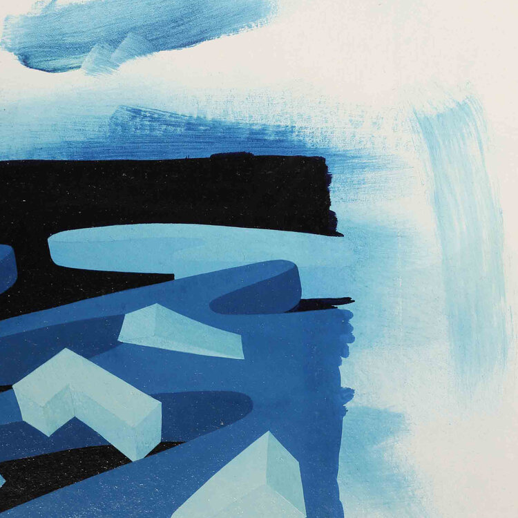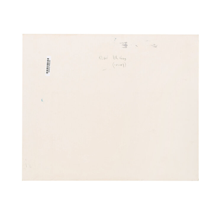 Hans Klaui, Zonder titel, 1982. Schildering op karton. Abstracte voorstelling in blauw en zwart met grove penseelstreken. Signatuur en jaar linksonder. Conditie: gebruikssporen aan de randen en vlekken onderaan. Afmeting: 50 x 60 cm.
