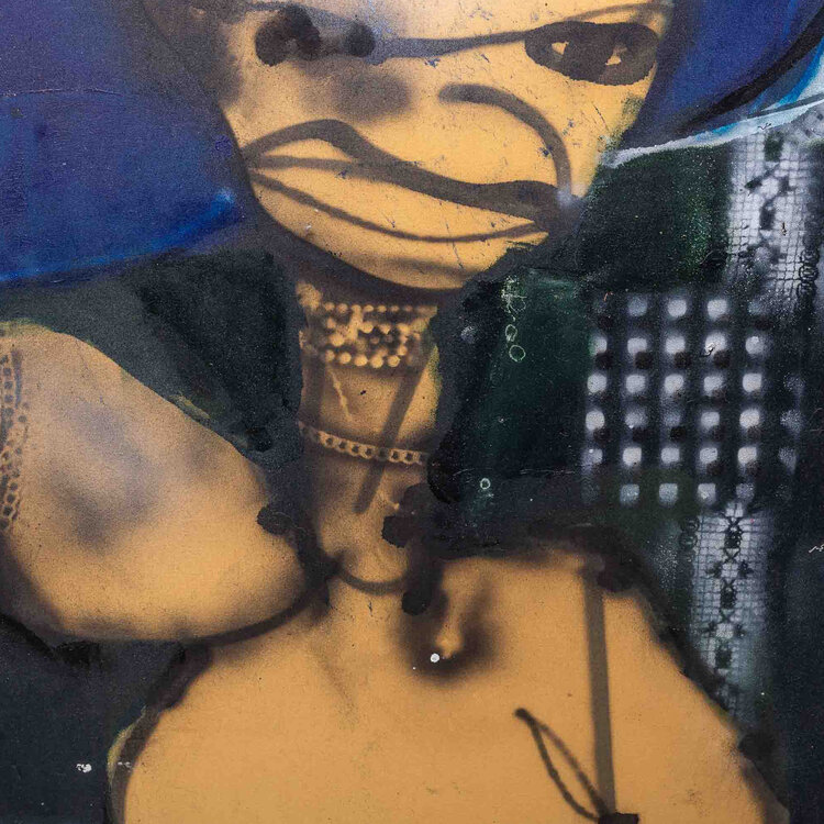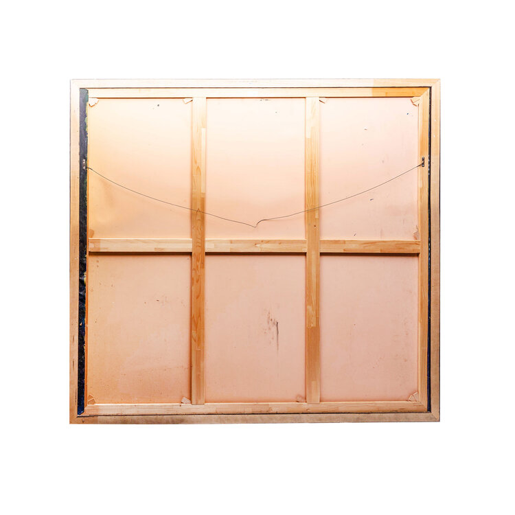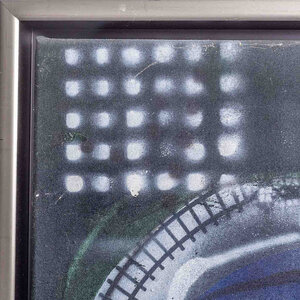 Herman Brood, 'Family', jaartal onbekend. Acryl op doek in zilverkleurige baklijst. Een groot doek met een meisje en een jongen voor een donkerblauwe achtergrond. Bovenin een print van een kanten gordijntje. Onderaan in wit gesigneerd met 'herman brood'. Het werk is met meerdere lagen geschilderd waarbij delen van de onderlaag tevoorschijn zijn gekomen wat een extra dimensie aan het werk geeft. Een certificaat van echtheid is bijgeleverd. Conditie: goed, hooguit wat lichte gebruikssporen aan de lijst. Afmeting doek: 170 x 180 cm.