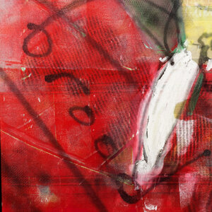 Herman Brood, 'Man met hond'. Datering onbekend. Acryl op doek in baklijst. Afbeelding van een man met hond wandelend over een stoep, met op de achtergrond een gebouw en bomen. Linksonder in zwart gesigneerd met 'brood'.
