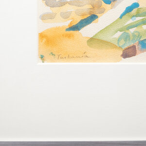 Ineke Ebbinge, 'Tuskania nr.I', 1984. Aquarel op papier in metalen lijst. Schildering met zicht op de Italiaanse stad Tuskania. Signatuur rechtsonder. Conditie: goed, enkel wat lichte gebruikssporen aan de lijst, in het midden zit een tape-restje. Afmetingen lijst: 55 x 45 cm; beeldvlak: 24 x 35 cm.