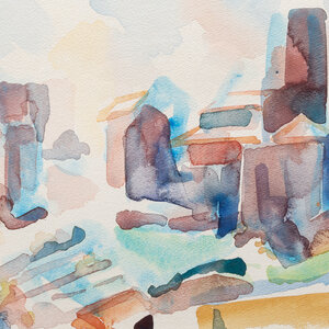 Ineke Ebbinge, 'Tuskania nr.II', 1984. Aquarel op papier in metalen lijst. Schildering met zicht op de Italiaanse stad Tuskania. Signatuur rechtsonder. Conditie: goed, enkel wat lichte gebruikssporen aan de lijst. Afmetingen lijst: 45,5 x 55,5 cm; beeldvlak: 24 x 35 cm.