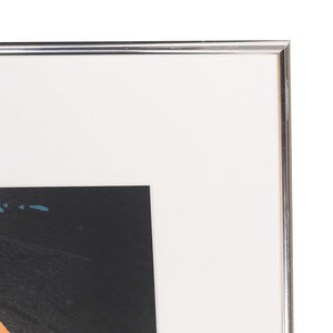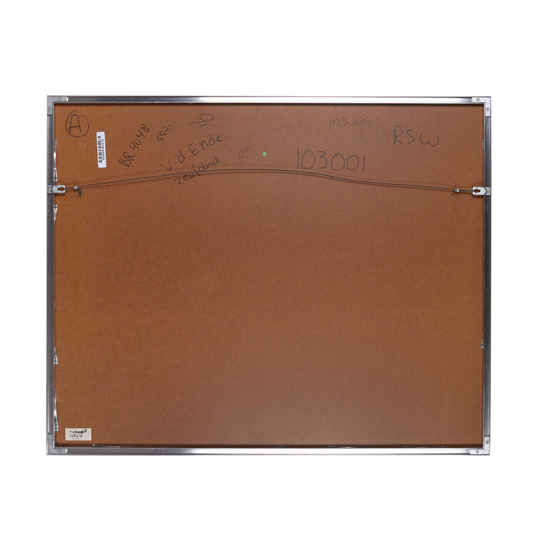 Jaap van den Ende, Zonder Titel, 1988. Zeefdruk op papier in metalen lijst, oplage 38/40. Abstracte met kleurrijke vormen en zwarte vlakken op een gele achtergrond. Linksonder oplagenummer, rechtsonder signatuur en jaar. Conditie: goed, gebruikssporen aan lijst. Afmeting werk zonder lijst: 50 x 68 cm.