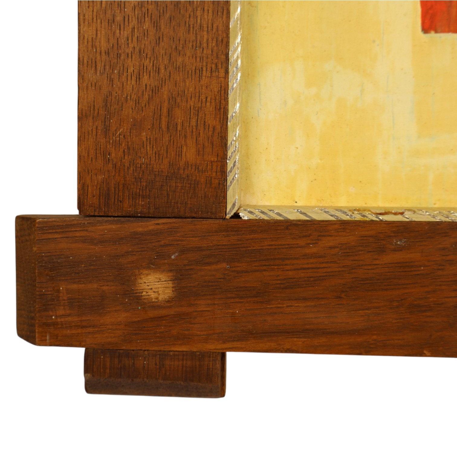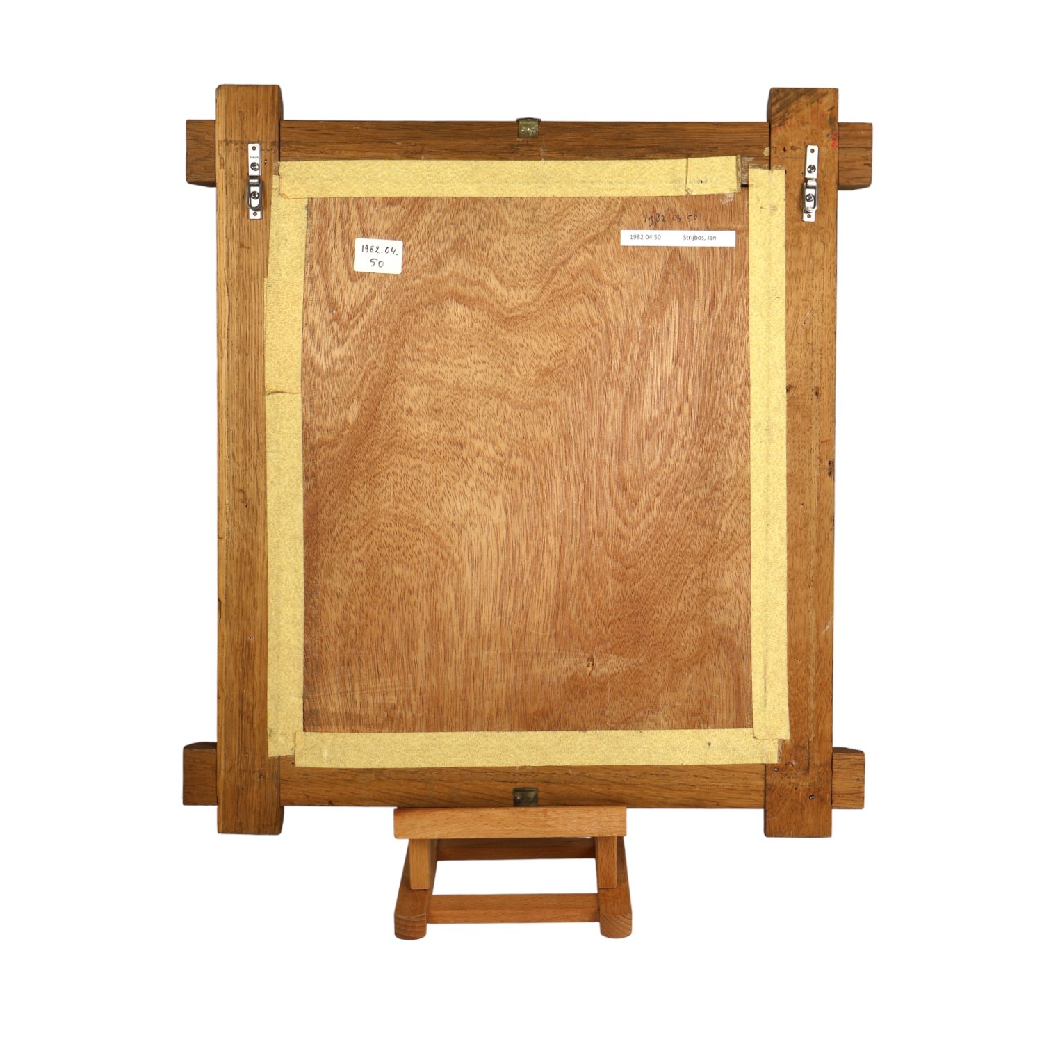 Jan Strijbos, 'Six heads that fit together', 1960-1980. Oil on plywood in wooden frame. Bust portrait of six people on blue background. Signature at bottom right. Jan (Johannes) Strijbos (Eindhoven 1896 - Merkelbeek 1977) was a carpenter. After he retired, he became a self-made painter in the naïve style and crafted the frames for his works himself. Condition: good; frame shows signs of wear, such as the absence of ornaments in the top right corner and bottom left corner. Dimensions: image plane 38 x 33 cm, with frame 50.2 x 46.4 x 1.7 cm.