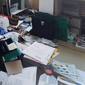 Foto, 'Intérieur 14', uit een serie van foto's van Jean-Louis Garnell (1954, Dolo, Frankrijk) in Angers, Frankrijk, 2001. Foto op aluminium plaat van een interieur van een huis. Over deze serie zei Jean-Louis Garnell: "I'm interested in interiors that change in the course of the days, in connection with the circumstances in life, the signs of daily life." Deze fotoserie behoort tot de foto expositie 'Les intérieurs du monde' uit 2001 in het Zaans Museum. Een fascinerend document van interieurs in 7 steden door 14 fotografen uit 5 landen, in samenwerking tussen de gemeenten Zaanstad en Haarlem met hun zustersteden. Angers heeft een stedenband met Haarlem. Conditie: Vertonen gebruikssporen, beschadigingen aan de randen, taperesten op de achterkant. Afmetingen: 40 x 50 cm.