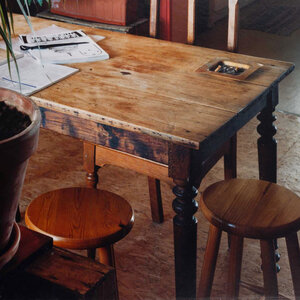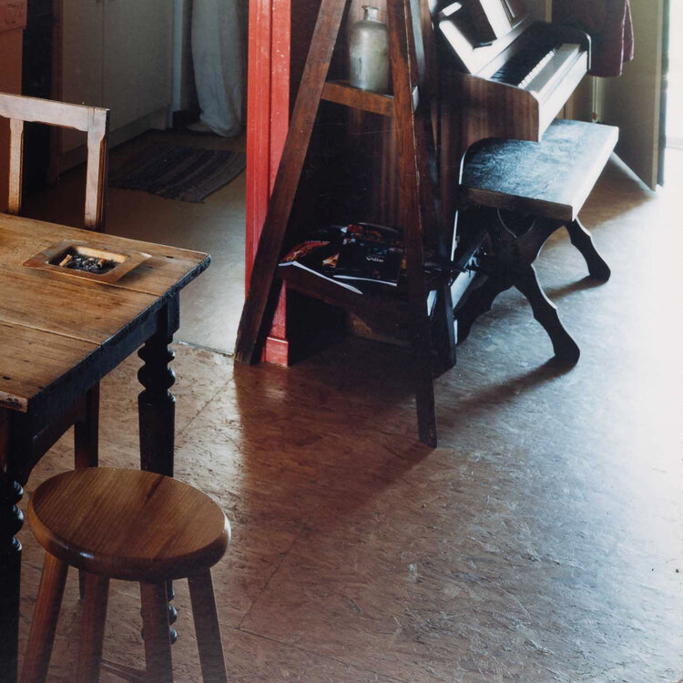 Foto, 'Intérieur 7', uit een serie van foto's van Jean-Louis Garnell (1954, Dolo, Frankrijk) in Angers, Frankrijk, 2001. Foto op aluminium plaat van een interieur van een huis. Over deze serie zei Jean-Louis Garnell: "I'm interested in interiors that change in the course of the days, in connection with the circumstances in life, the signs of daily life." Deze fotoserie behoort tot de foto expositie 'Les intérieurs du monde' uit 2001 in het Zaans Museum. Een fascinerend document van interieurs in 7 steden door 14 fotografen uit 5 landen, in samenwerking tussen de gemeenten Zaanstad en Haarlem met hun zustersteden. Angers heeft een stedenband met Haarlem. Conditie: Vertonen gebruikssporen, beschadigingen aan de randen, taperesten op de achterkant. Afmetingen: 40 x 50 cm.