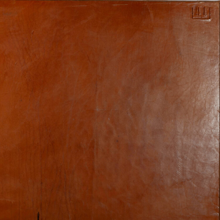 J.L. Wortel, 'Pyramide', 1979. Leder op paneel. Abstract werk van ingesneden lijnen in bruin leer. De lijnen in piramidevorm zijn zwart gemaakt. Signatuur rechtsboven. Conditie: vertoont gebruikssporen. Afmetingen: ca 105 x 105 x 5,5 cm.