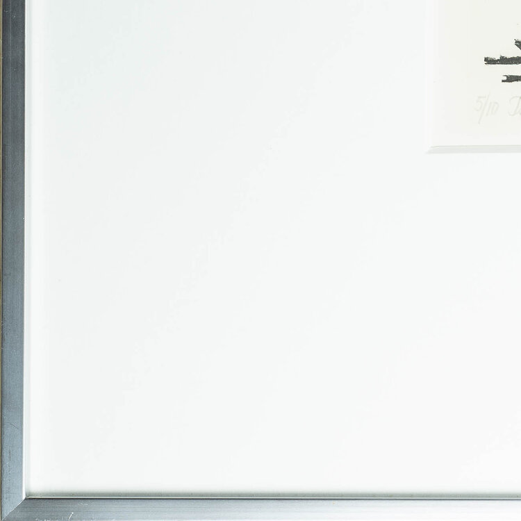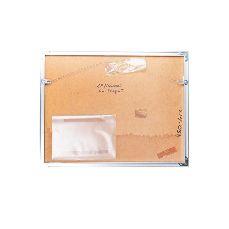 Kees Nevenzel (Amsterdam, 1951), 'De Neergang van Sloterdijk - Het Dorp # 1', 1982. Houtsnede in metalen lijst met passe-partout, oplage 5/10. Stilistische voorstelling van een landschap in zwart en wit. Signatuur rechtsonder. Conditie: het werk is in goede staat. Afmetingen: beeldvlak 14 x 21 cm; lijst 40,5 x 50,5 cm.