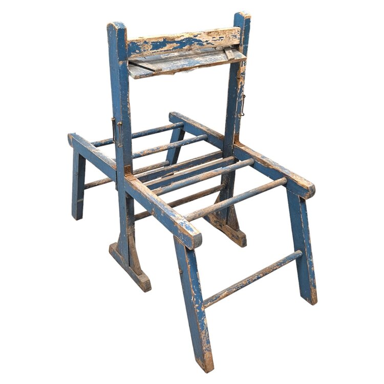 Wasbok of wasbank, klaprek van hout, blauw geschilderd, waar bovenop de wringer werd geschroefd. Aan de voor- en achterkant zit een uitklapbaar rek. Het ene voor de bak met nat wasgoed, het andere voor de bak met uitgewrongen wasgoed. Datering: 1900. Conditie: werkt nog, maar kan een vers likje verf gebruiken. Afmetingen: ca. 102,0 x 59,0 x 31,0 cm.