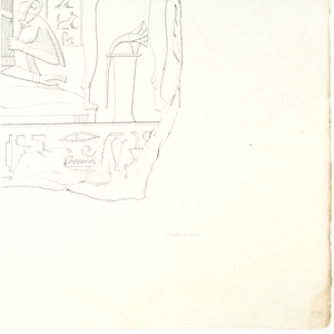 Lithografie van tekeningen gemaakt door Tiemen Hooiberg voor de eerste complete catalogus van de Egyptische collectie van het Rijksmuseum van Oudheden. Getekend is het reliëf van Ptahmes. Hij was opperrentmeester in de tempel van Ptah, de stadsgod van Memphis. Het reliëf is te bekijken in de collectiedatabase van de site van het museum. Datering: 1840. Conditie: lichte tekenen van ouderdom aan de randen, de prent is in het midden dubbel gevouwen. Afmetingen: ca. 54,5 cm x 75,5 cm.