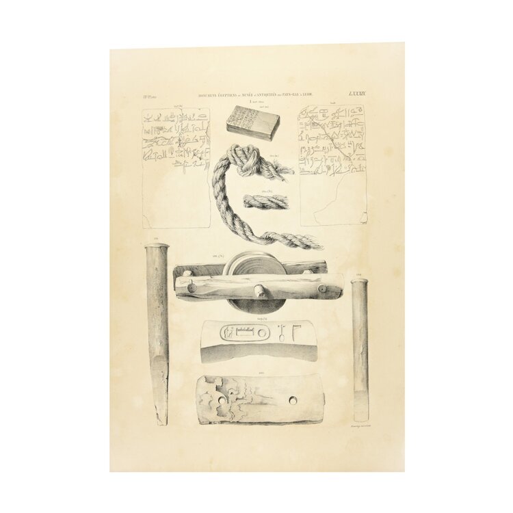 Set van drie litho's gemaakt door Tiemen Hooiberg voor de eerste complete catalogus van de Egyptische collectie van het Rijksmuseum van Oudheden. De litho's hebben afbeeldingen van voorwerpen met hiërogliefen. Alle objecten zijn te bekijken in de collectiedatabase van de site van het museum. Van 1830 tot 1889 werkte Tiemen Hooiberg in het Rijksmuseum van Oudheden te Leiden als opgravingtekenaar, lithograaf en amanuensis. Datering: 1840. Conditie: De prenten vertonen sporen van ouderdom, zoals verkleuring, vlekken en beschadigingen, mn aan de randen. Lichte afdruk van een andere litho zichtbaar. Afmetingen: ca. 54 x 37 cm.