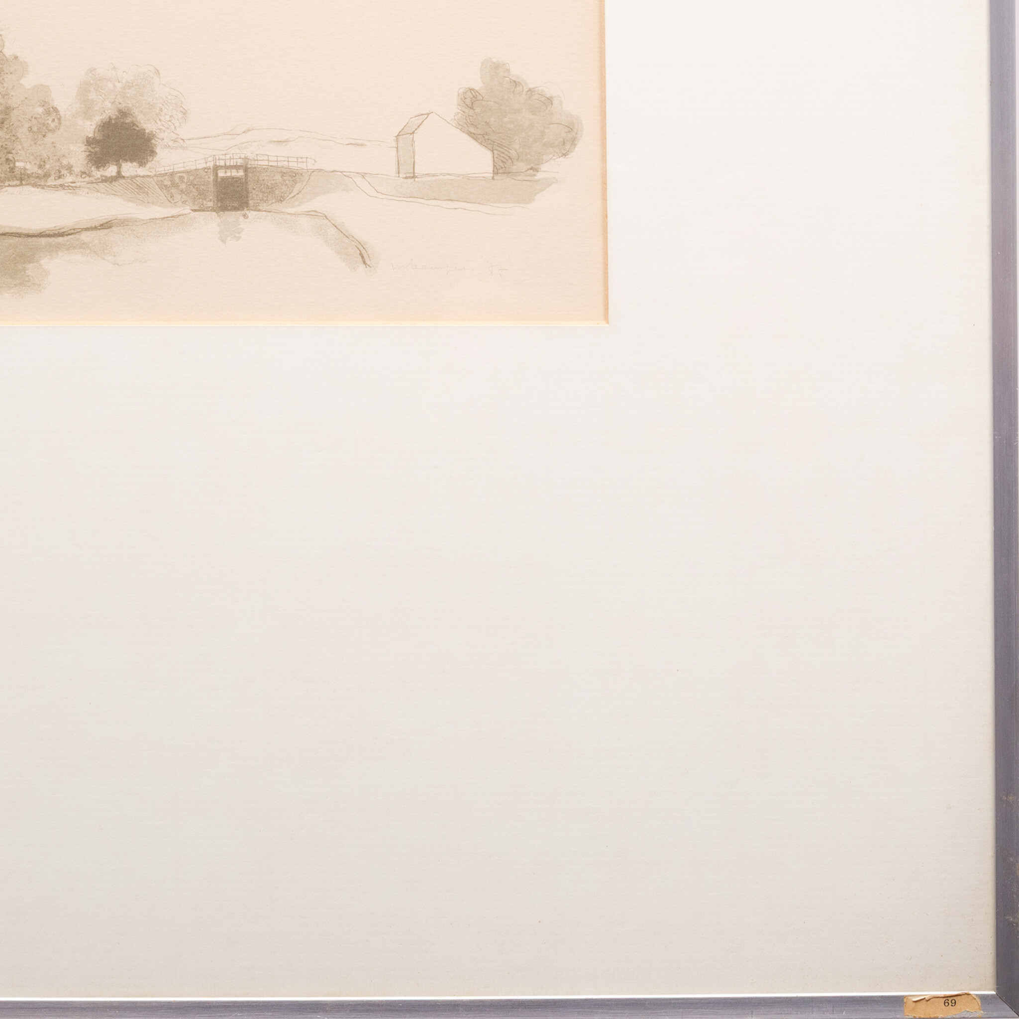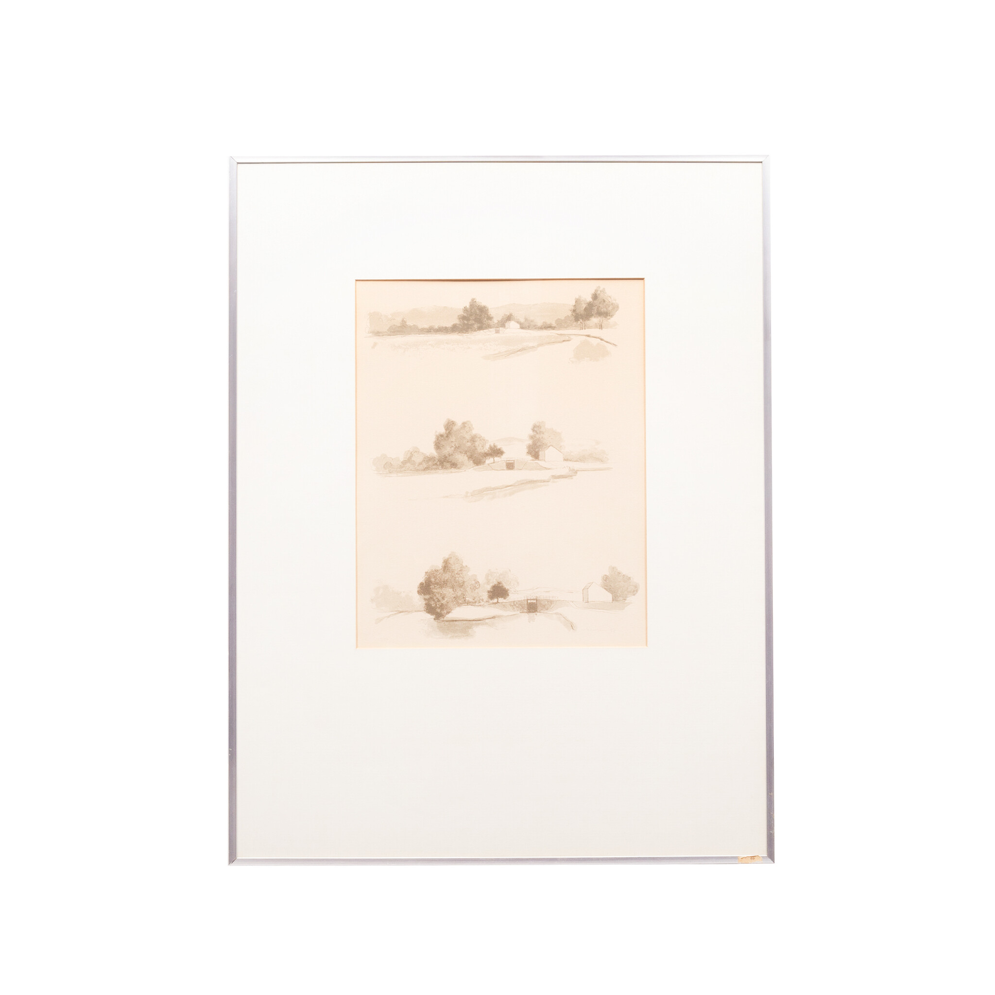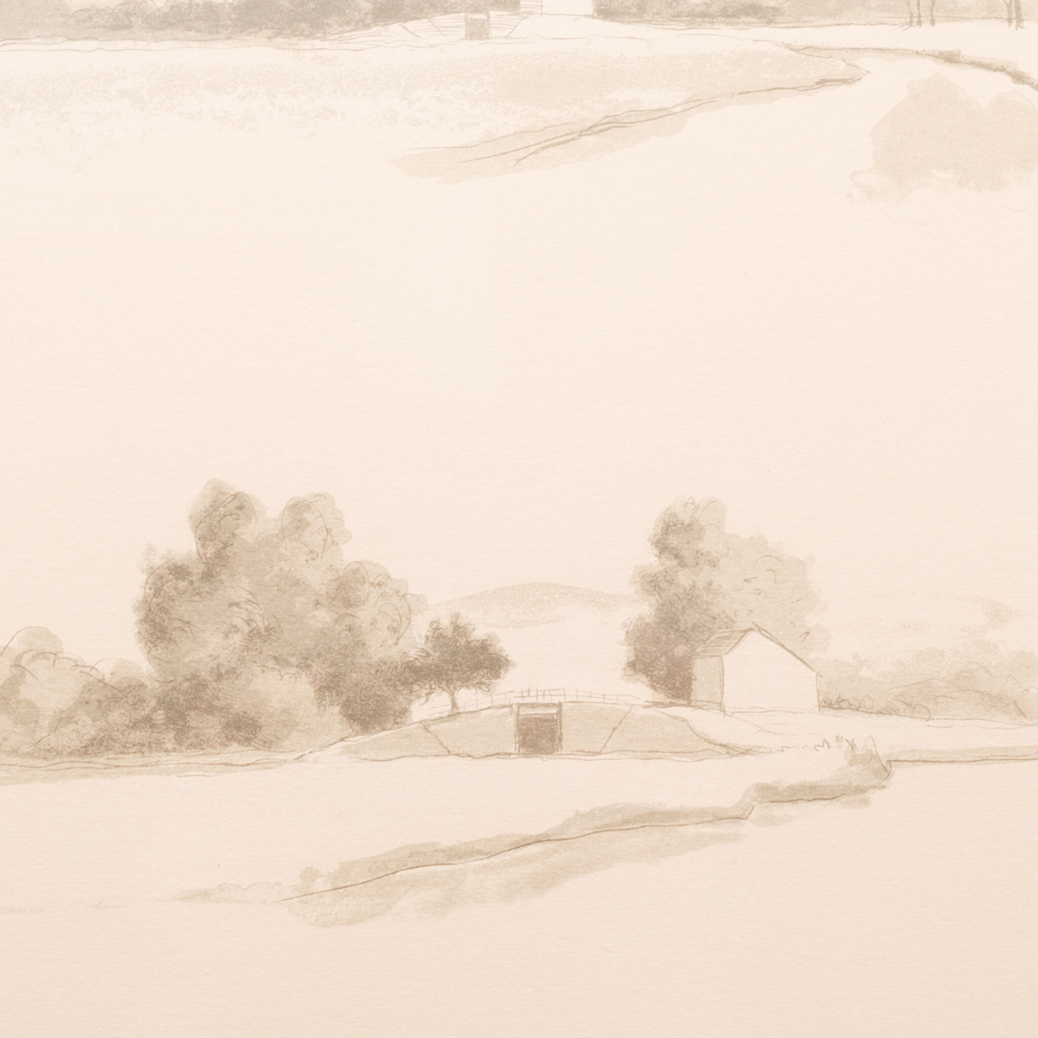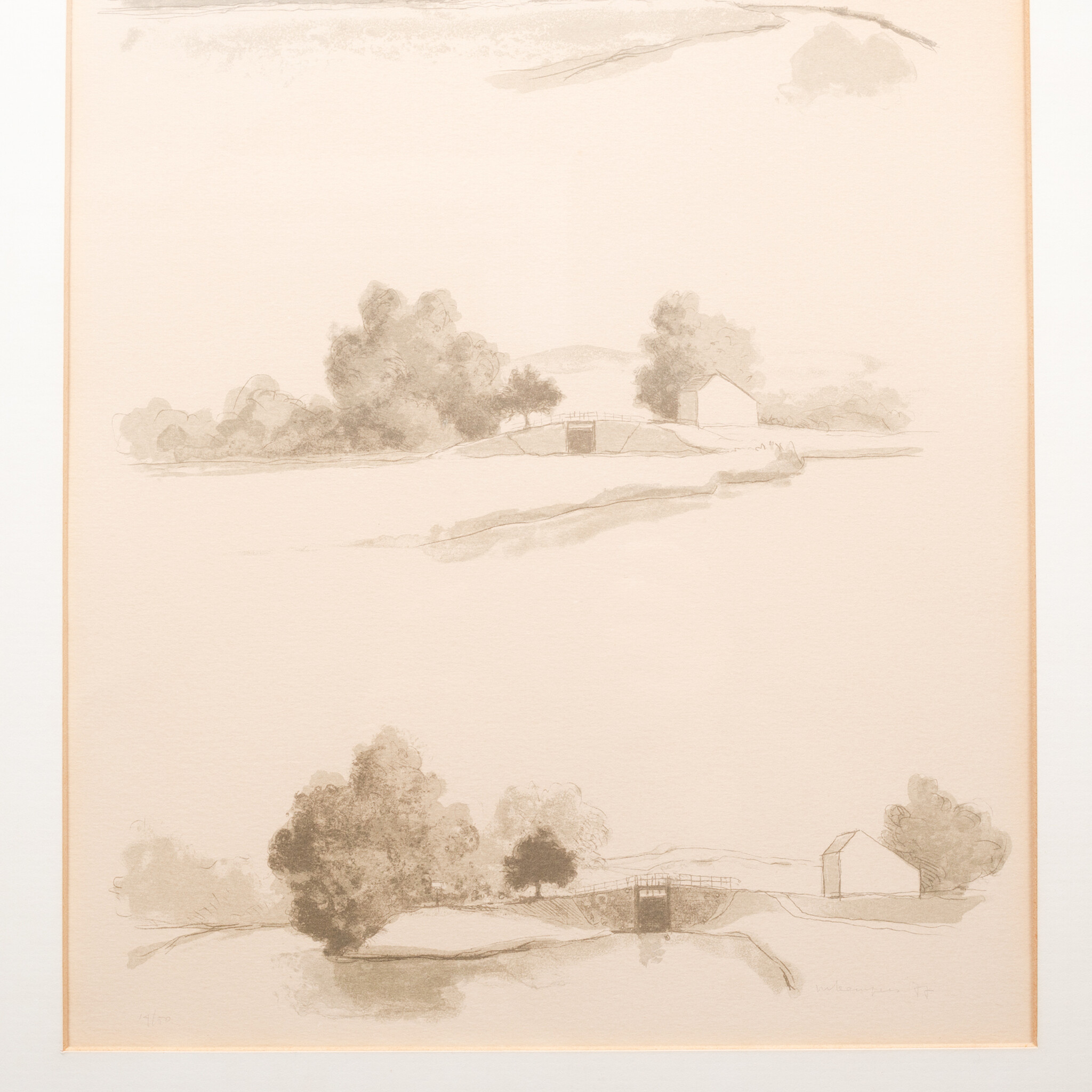 Mart Kempers (Enschede, 1924 - Amsterdam, 1993), 'Ormoy sur Sa..ne', 1977. Aquatint in metalen lijst, oplage 14/50. Drie landschappen boven elkaar, signatuur rechtsonder. Conditie: werk is verkleurd, lijst toont gebruikssporen en bovenste lat zit een beetje los. Afmetingen lijst: 70 x 53,5 cm; beeldvlak: 36 x 28 cm.