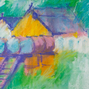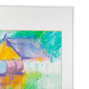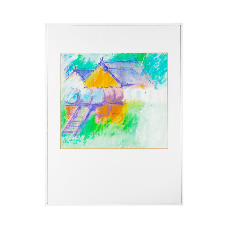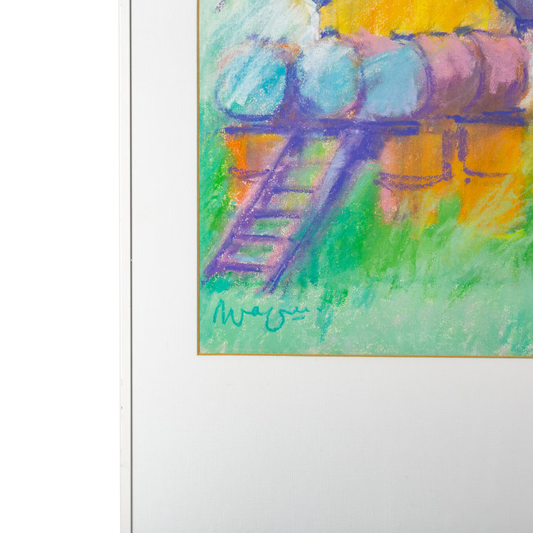 M.J. Wagner, Tuinderij 's Gravenweg, jaartal onbekend. Pastel op papier in witte lijst. Kleurrijke voorstelling van een gebouw met trap in een groene omgeving. Signatuur linksonder. Conditie: goed, gebruikssporen aan lijst. Afmeting werk zonder lijst: 47 x 42 cm.
