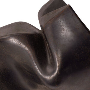 Nico Betjes, Zonder titel, datering onbekend. Liggend sculptuur van metaalplaat. Abstracte compositie van golvende vormen. Conditie: sporen van gebruik en ouderdom zoals krasjes en patina. Afmetingen: ca. 60 x 110 x 30 cm.