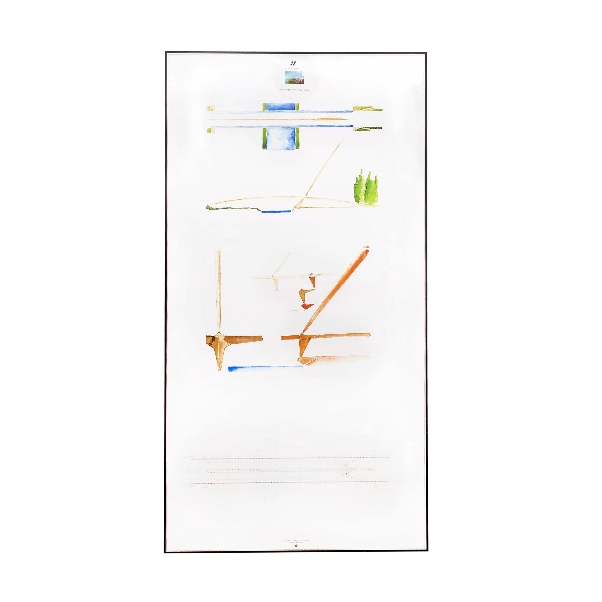 Noordelijke Randweg Brug, Santiago Calatrava Falls. Afdruk van diverse schetsen en technische tekening van de Noordelijke Randweg Brug door architectenbureau Calatrava. Vermoedelijk gebruikt als presentatiemateriaal voor de Gemeente Haarlemmermeer. Ingelijst in zwarte lijst met plexiglas. Datering: onbekend. Conditie: goed. Afmetingen: ca. 180 x 90 cm.