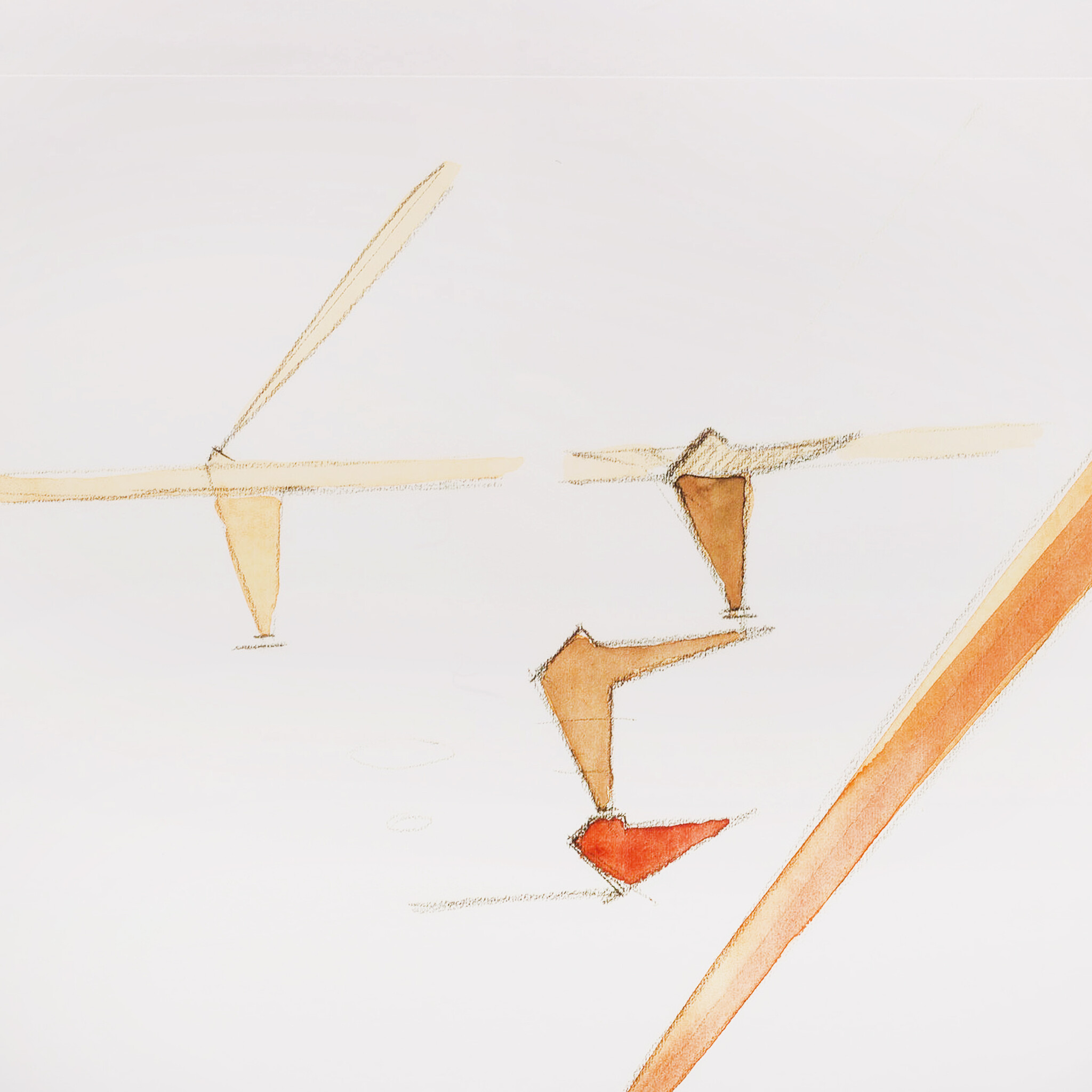 Noordelijke Randweg Brug, Santiago Calatrava Falls. Afdruk van diverse schetsen en tekeningen van de Noordelijke Randweg Brug door architectenbureau Calatrava. Vermoedelijk gebruikt als presentatiemateriaal voor de Gemeente Haarlemmermeer. Datering: onbek