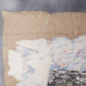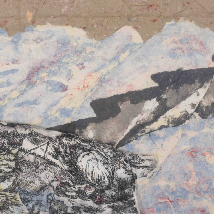 P. Gentenaar, Gevaren der zee. Drie dimensionaal werk in gemengde techniek met zee thema achter glas. Afmetingen: 82 x 81 cm. Conditie: Lijst toont sporen van gebruik.