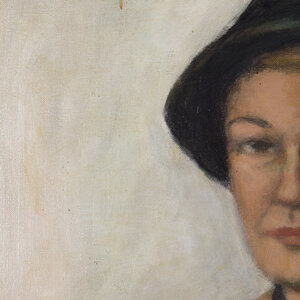 SOLD - Theo Swagemakers, Portrait Elly Swagemakers with hat, 1972