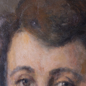 Theo Swagemakers, Portret van een vrouw, ca. 1970. Olieverf op doek, werk 40.3 x 30.3 cm, lijst 55.9 x 45.9 cm. Portret van een onbekende vrouw met een ketting in een witte lijst, gesigneerd rechtsonder. Theo Swagemakers (1898-1994) is een bekende Nederlandse schilder van voornamelijk portretten en stillevens. Hij genoot zijn opleiding in Brussel en Parijs en heeft verschillende beroemdheden mogen portretteren, zoals een groot deel van de Koninklijke familie. Hiervoor heeft hij de Thérèse van Duyl-Schwartzeprijs in ontvangst mogen nemen in 1958. Conditie: het werk is in prima conditie. Het vernis is wat vergeeld op sommige plekken. De lijst heeft lichte gebruikssporen, zoals lichte slijtage aan de onderzijde en enkele vegen.