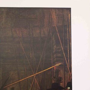 Poster van het schilderij 'De Nachtwacht' van Rembrandt van Rijn (1606-1669). Het welbekende werk van Rembrandt uit 1642 wat in het Rijksmuseum in Amsterdam hangt. Rondom het werk is een wit kader. Conditie: goed met enkel lichte gebruikssporen aan de randen en hoeken. Afmetingen ca: 54 x 71 cm.