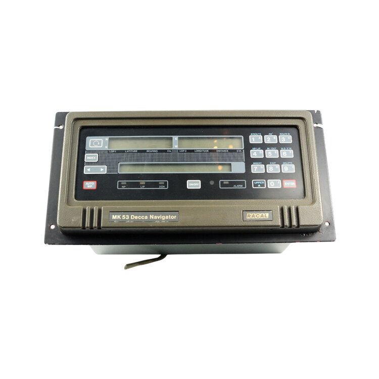 Racal navigatieinstrument type MK 53 Decca Navigator met digitale uitlezing, onderdeel van een kotterbrug. Het typenummer is 80323B, het serinummer is P. 1694. Dit specifieke apparaat is afkomstig van de GO 48, de Cornelis Senior, een schip uit Goedereede. Datering: 20ste eeuw. Conditie: vertoont gebruikssporen, werking niet getest. Afmetingen: ca. 20 cm hoog, 39 cm breed, 19 cm lang.